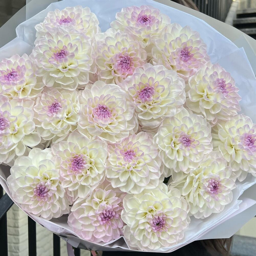 Букет из 19 бело-лиловых георгин в Дмитрове