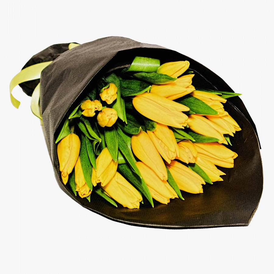 17 ярких жёлтых тюльпанов в стильной упаковке обеспечат весеннее настроение получательнице и улыбку. Порадовать любимую весной можно в любой день, подарив ей охапку солнечных лучиков с теплыми словами.